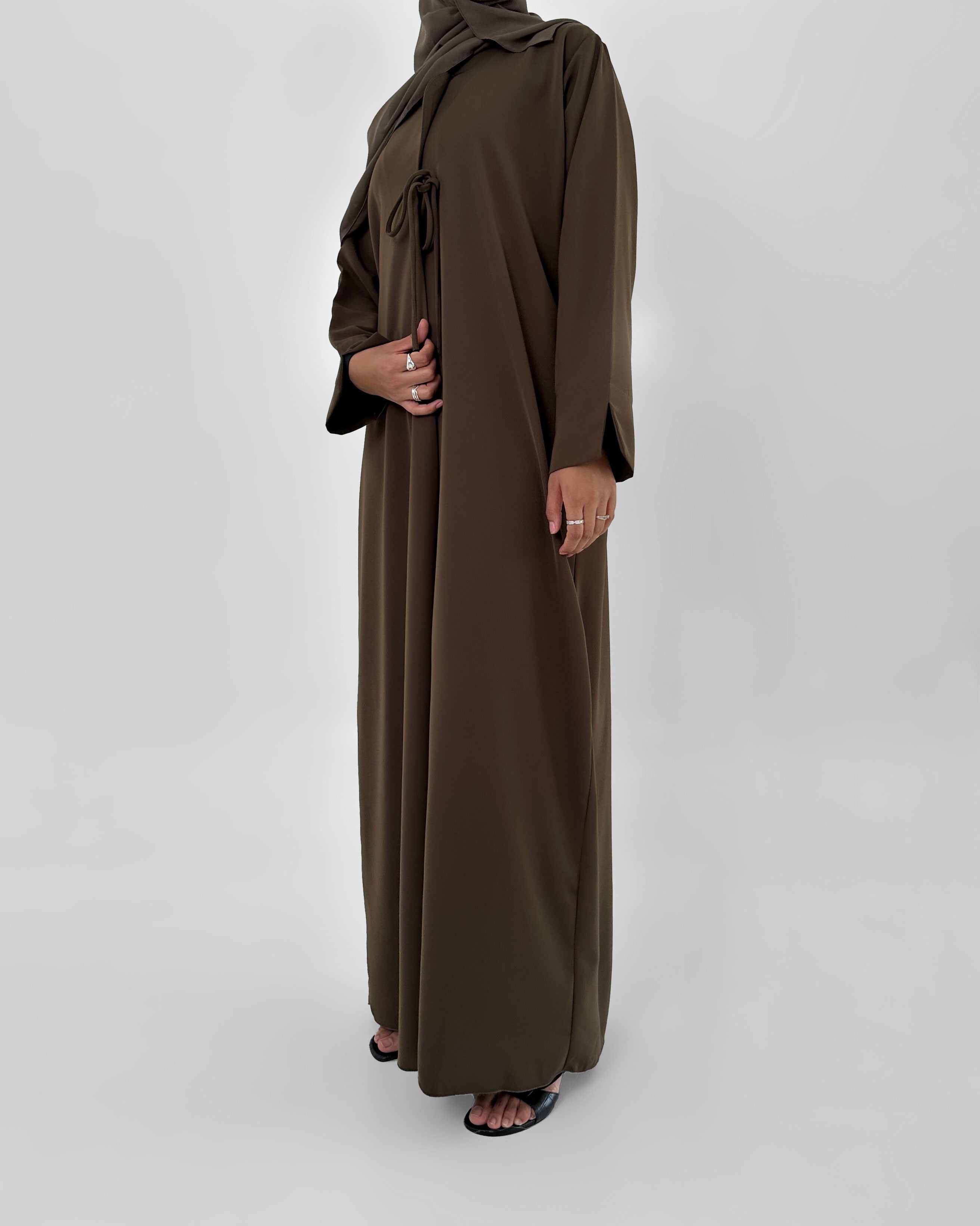 Entre le moment de votre commande et la réception de votre abaya, prévoyez jusqu’à 20 jours ouvrés pour la fabrication et l’expédition. Nous n’acceptons ni retour ni échange.